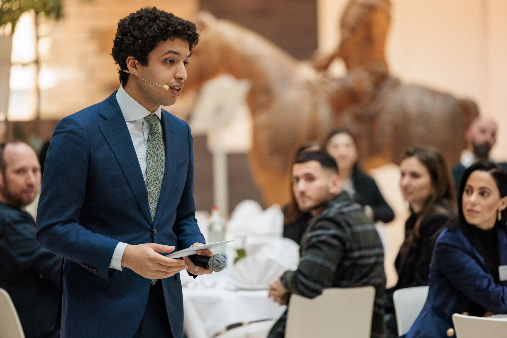 Op de dag van de bijeenkomst is Saber ruim op tijd aanwezig om de laatste details door te nemen en zorgt hij voor een soepel en energiek verloop.